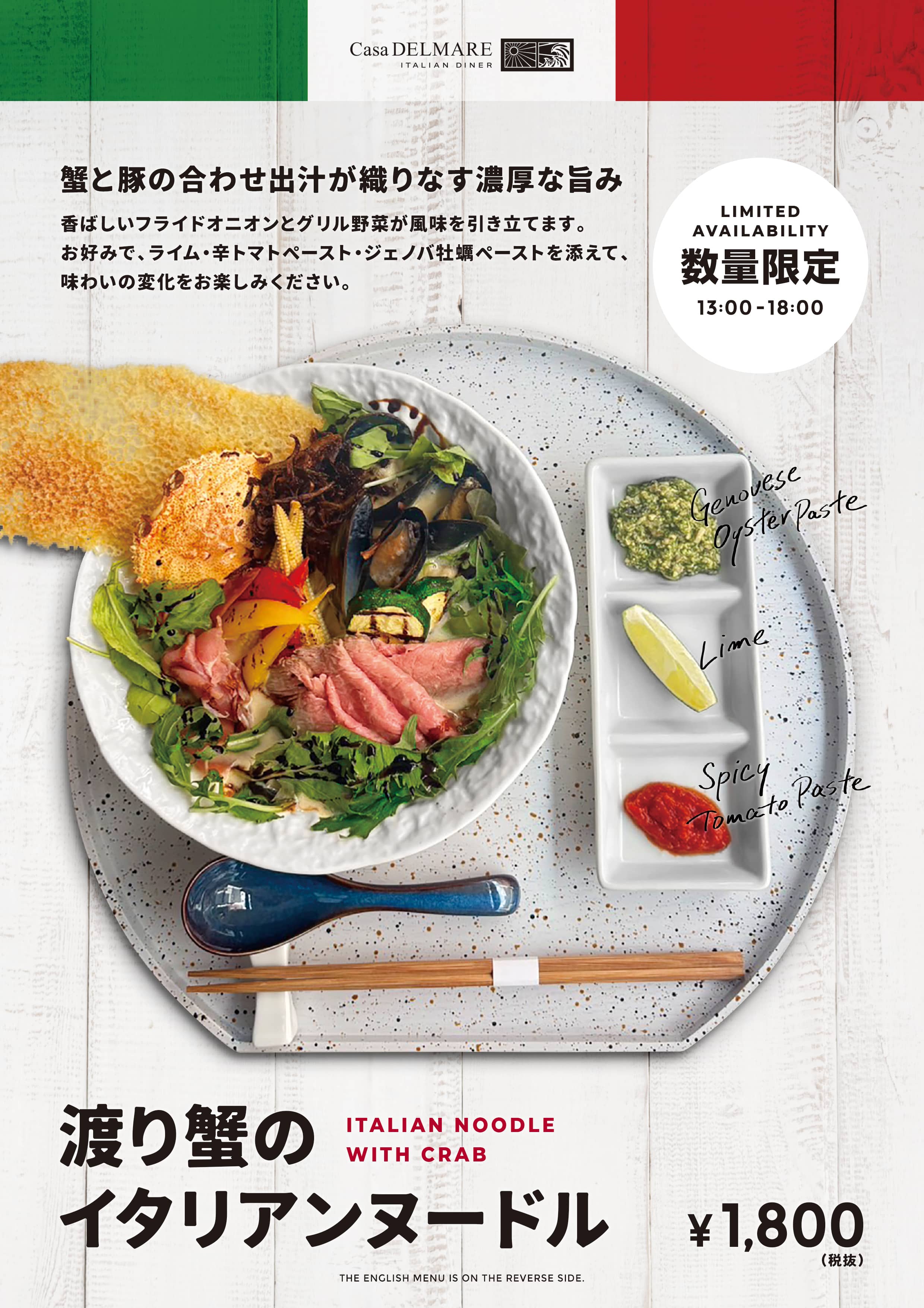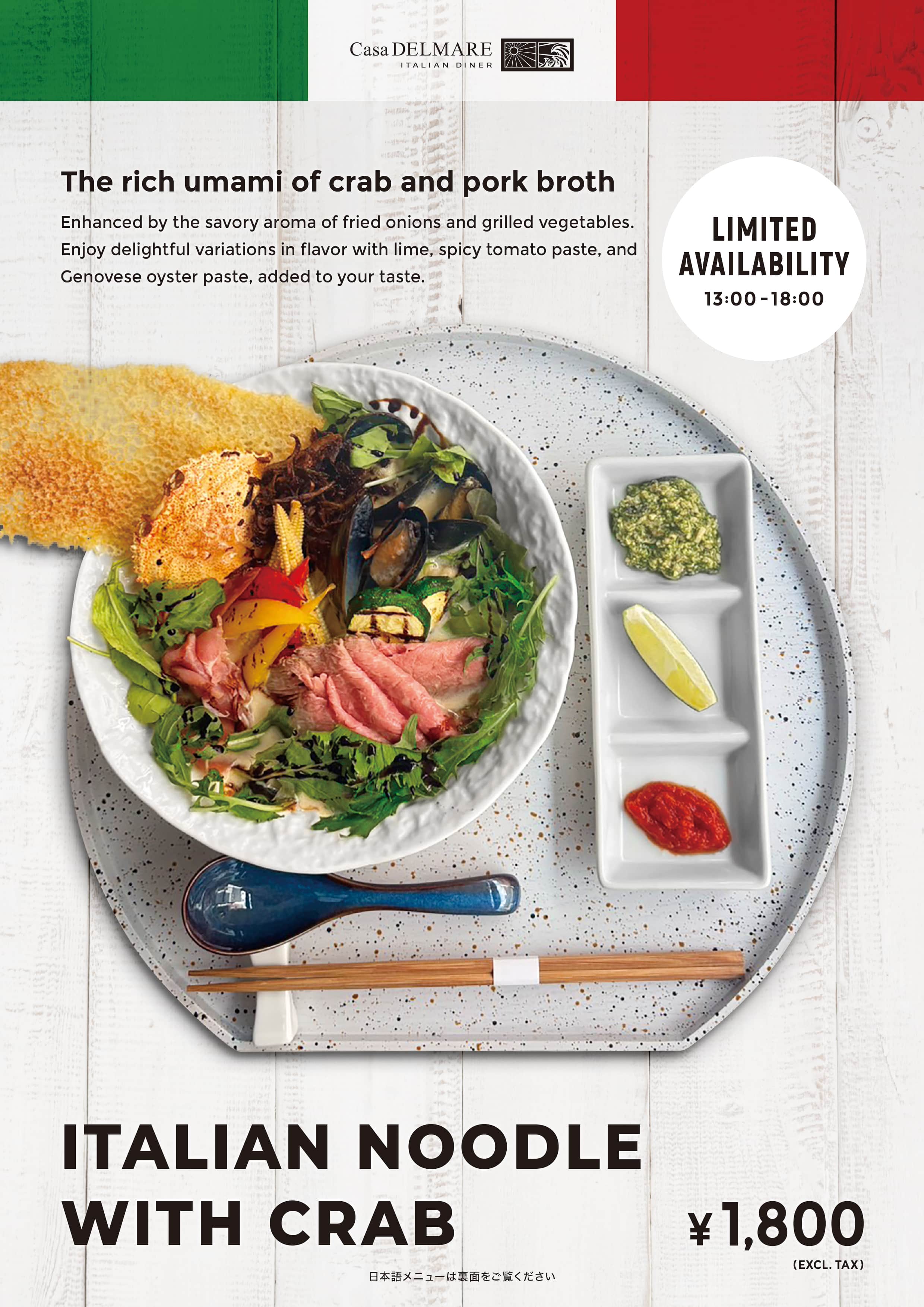 9月24日(水)より数量限定のメニューがはじまります。蟹と豚の合わせ出汁が織りなす濃厚な旨みをご堪能ください。